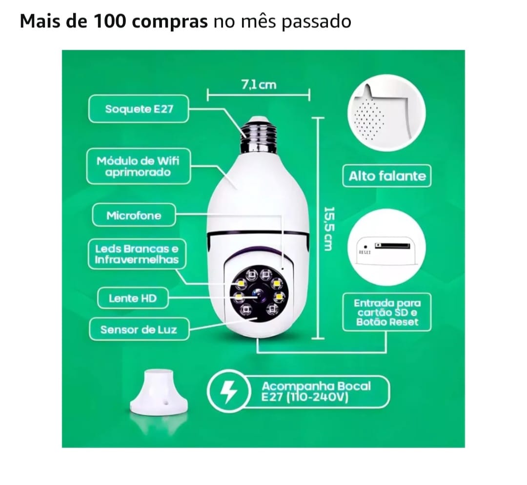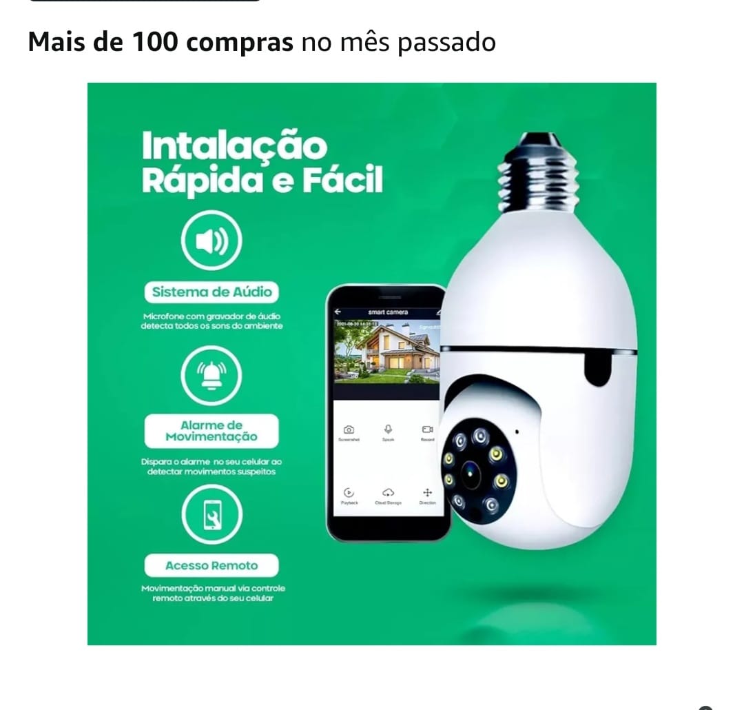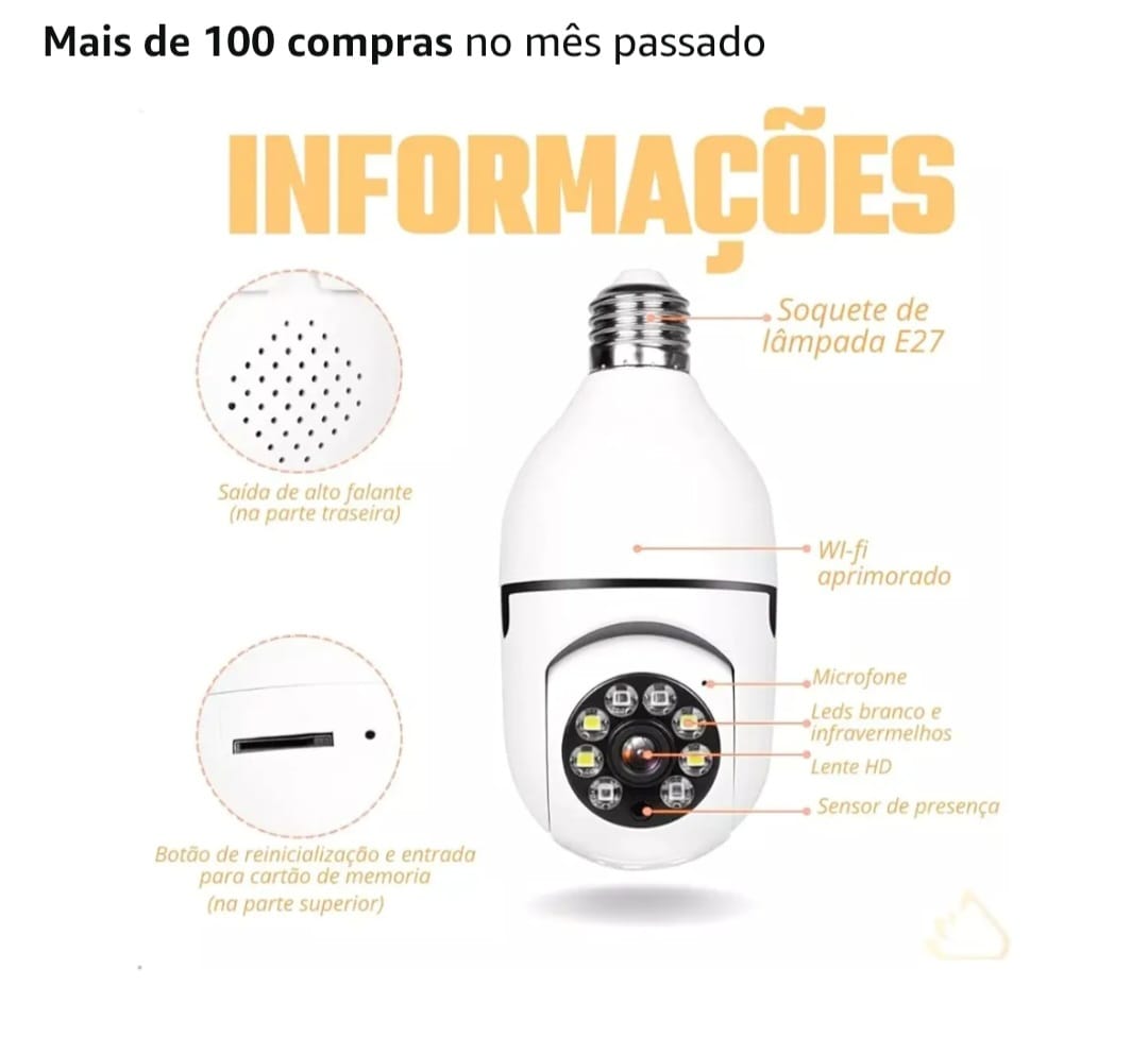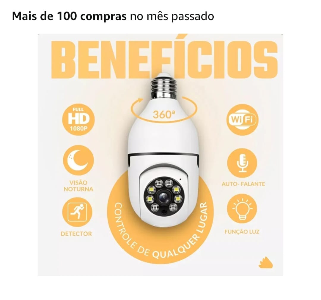 Câmera de Segurança WiFi Rotativa 360 Lâmpada Full HD